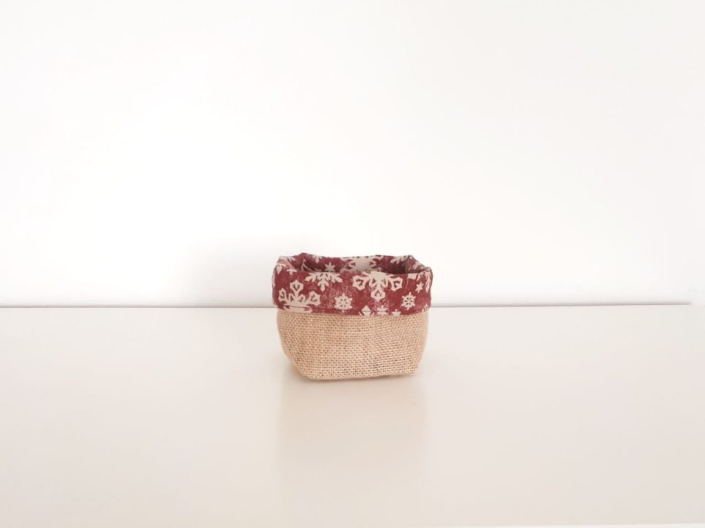 Ofrecemos otra idea de presentación en la mesa con estas cestas pequeñas de tela granate y yute, ideales para picos de pan, bolsitas para infusión…
